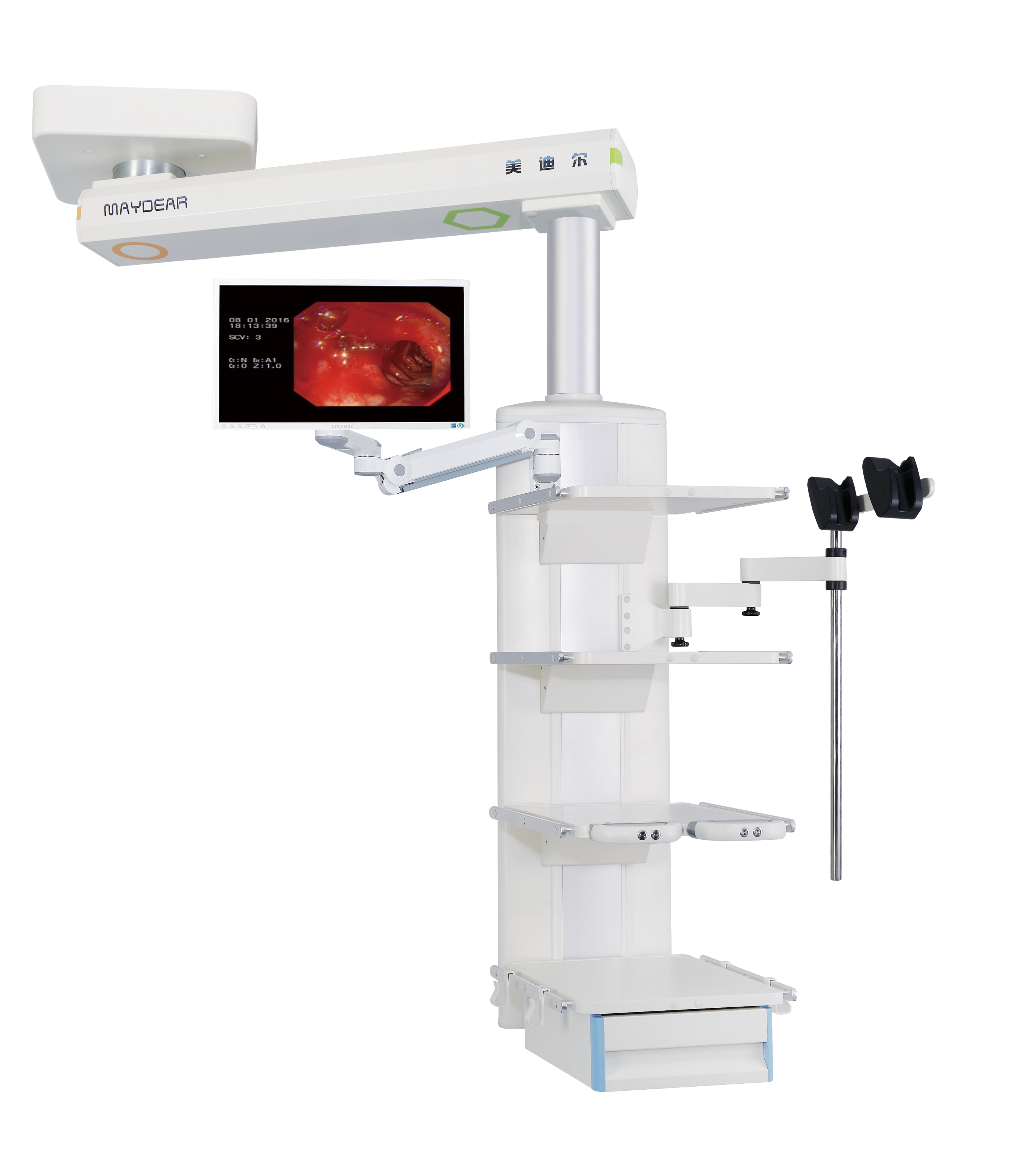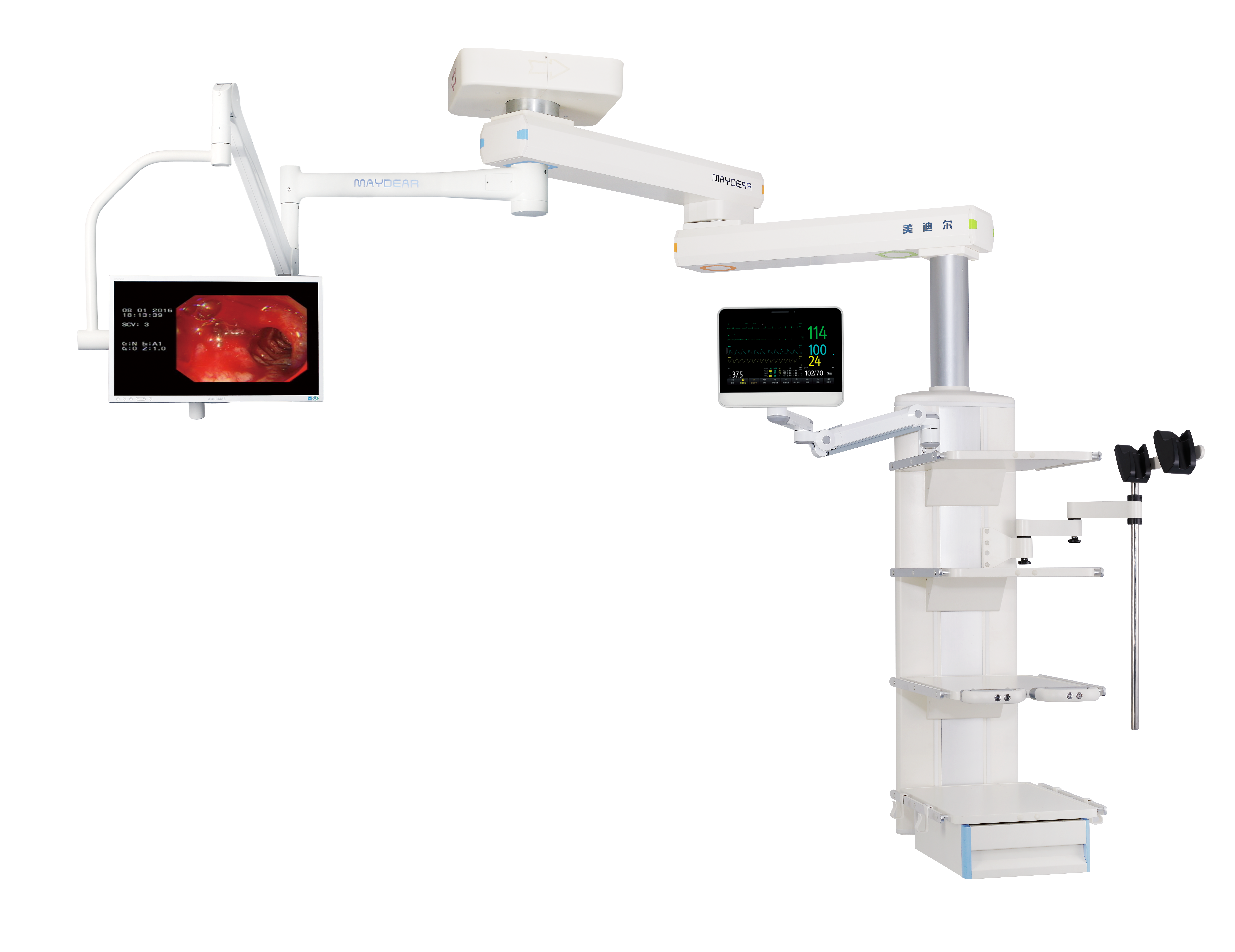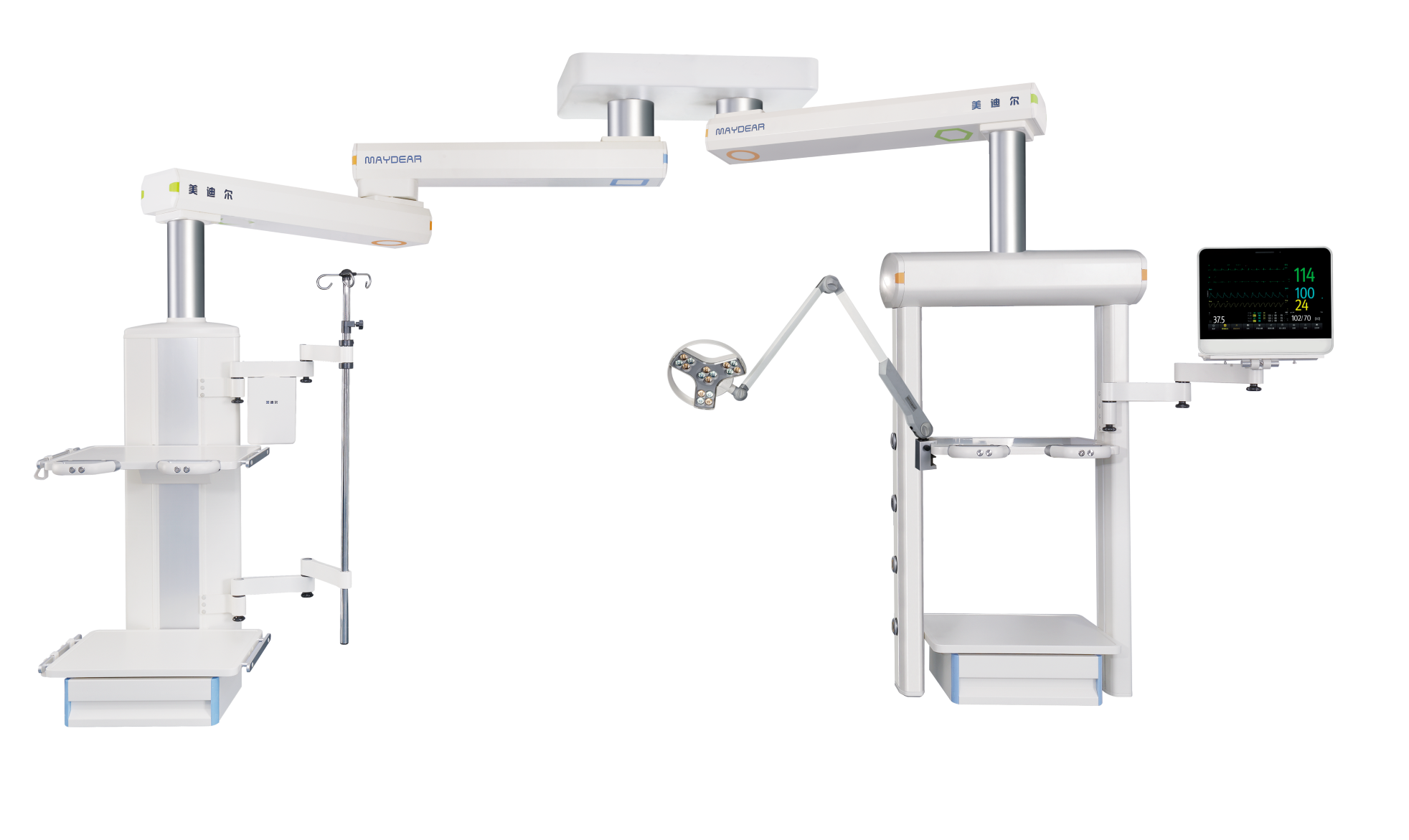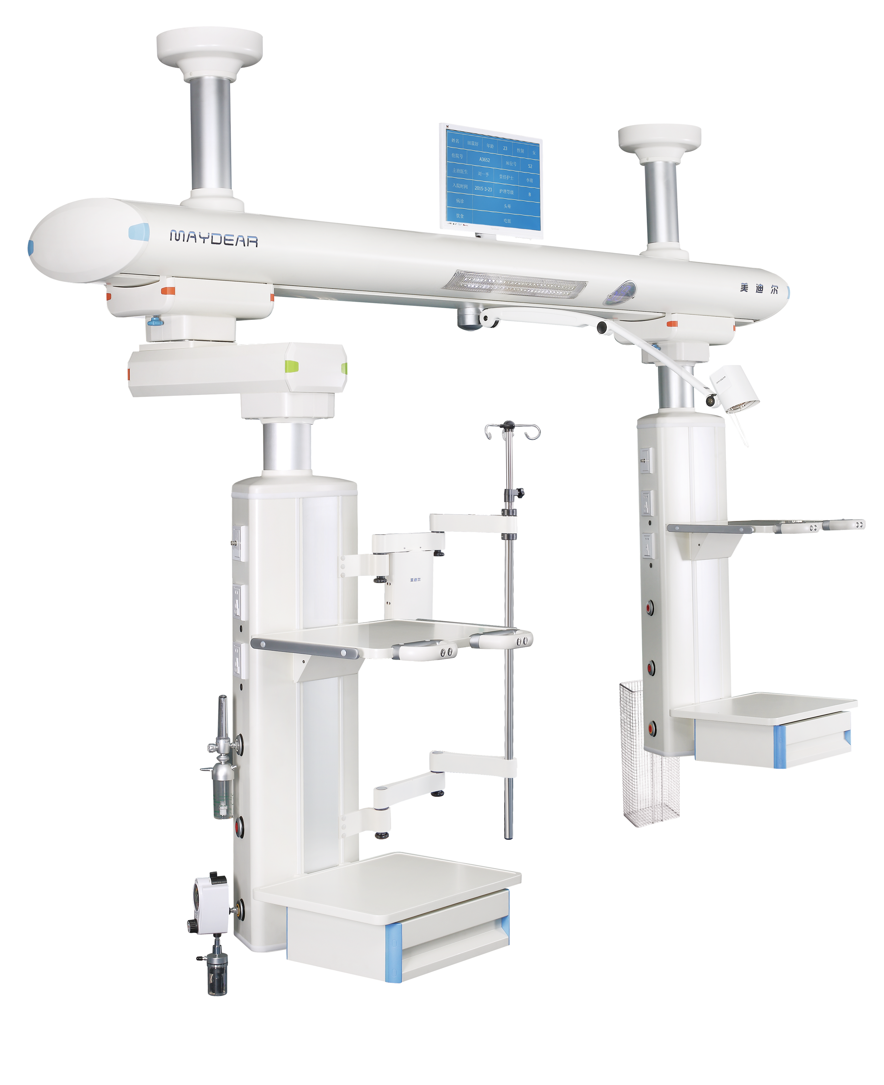 ICU 干濕分離旋臂吊橋 適用于醫(yī)院ICU病房,是現(xiàn)代重癥監(jiān)護病房必備的醫(yī)療搶救輔助設(shè)備,主要由橋架,干段和濕段組成。其特點在于合理的干濕分離結(jié)構(gòu),濕段配置升降靈活的輸液架和輸液泵架。干濕段配置有可升降調(diào)節(jié)的醫(yī)療監(jiān)護儀器平臺,在干濕段上分別將氧氣,空氣,吸引,強弱電,網(wǎng)絡(luò)輸入終端配置在醫(yī)護人員抬手可及的塔體上。濕段采用懸臂結(jié)構(gòu),提高了治療空間,移動旋轉(zhuǎn)部分采用氣控制動防飄移,桁架中央配置一款環(huán)保,節(jié)能的LED照明治療。為臨床治療提供了照明解決方案,另外還可根據(jù)您的要求選配通信傳呼,監(jiān)控,可視電話